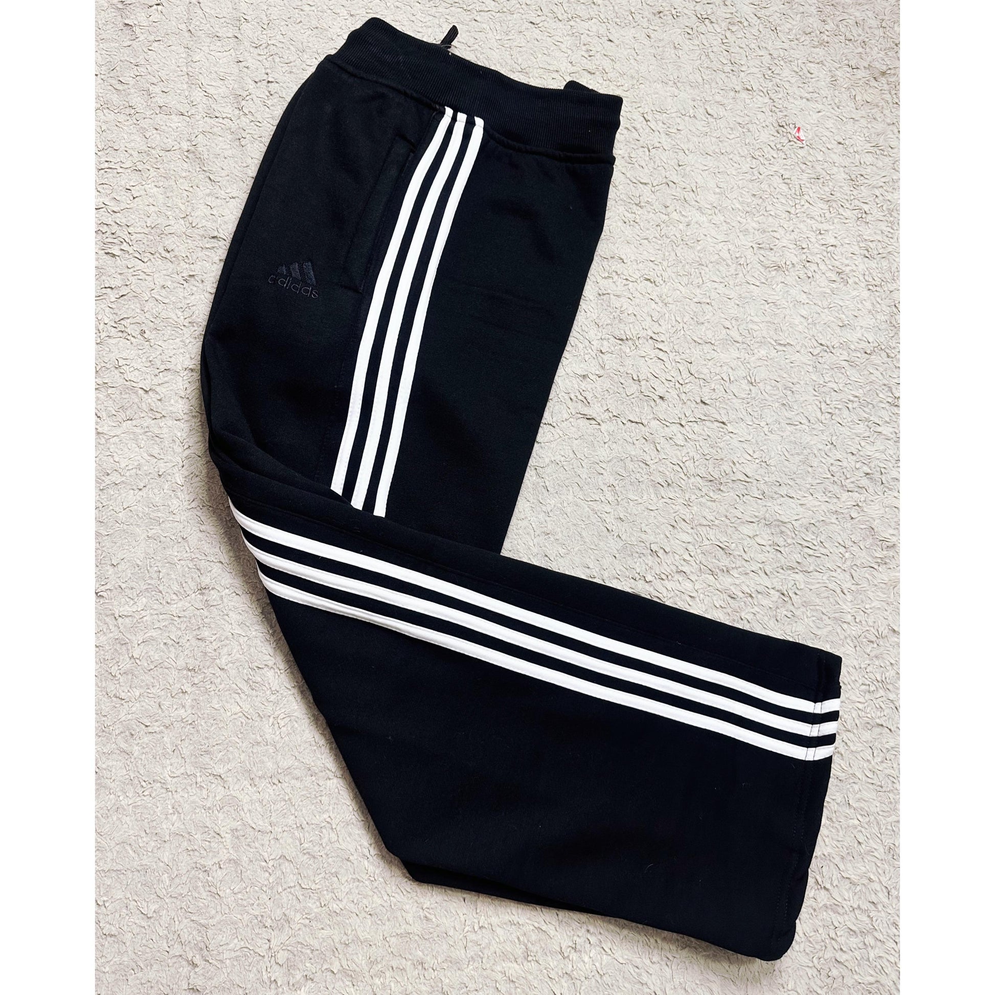 UPGRADE YOUR WARDROBE WITH THESE ADIDAS MEN’S PREMIUM COTTON TRACK PANTS, DESIGNED FOR COMFORT, STYLE, AND PERFORMANCE. CRAFTED FROM HIGH-QUALITY COTTON BLEND FABRIC, THESE JOGGERS OFFER A SOFT AND BREATHABLE FEEL, MAKING THEM PERFECT FOR EVERYDAY WEAR OR TRAINING SESSIONS. THE ICONIC WHITE 3-STRIPES DETAILING ALONG THE SIDES ADDS A CLASSIC STREETWEAR TOUCH, WHILE THE ELASTIC WAISTBAND WITH ADJUSTABLE DRAWSTRING ENSURES A SECURE FIT. SIDE POCKETS PROVIDE PRACTICALITY, AND THE SLIM-FIT DESIGN GIVES A MODERN, ATHLETIC LOOK. IDEAL FOR CASUAL OUTINGS, GYM, OR SPORTS ACTIVITIES – A PERFECT BLEND OF LUXURY AND PERFORMANCE.