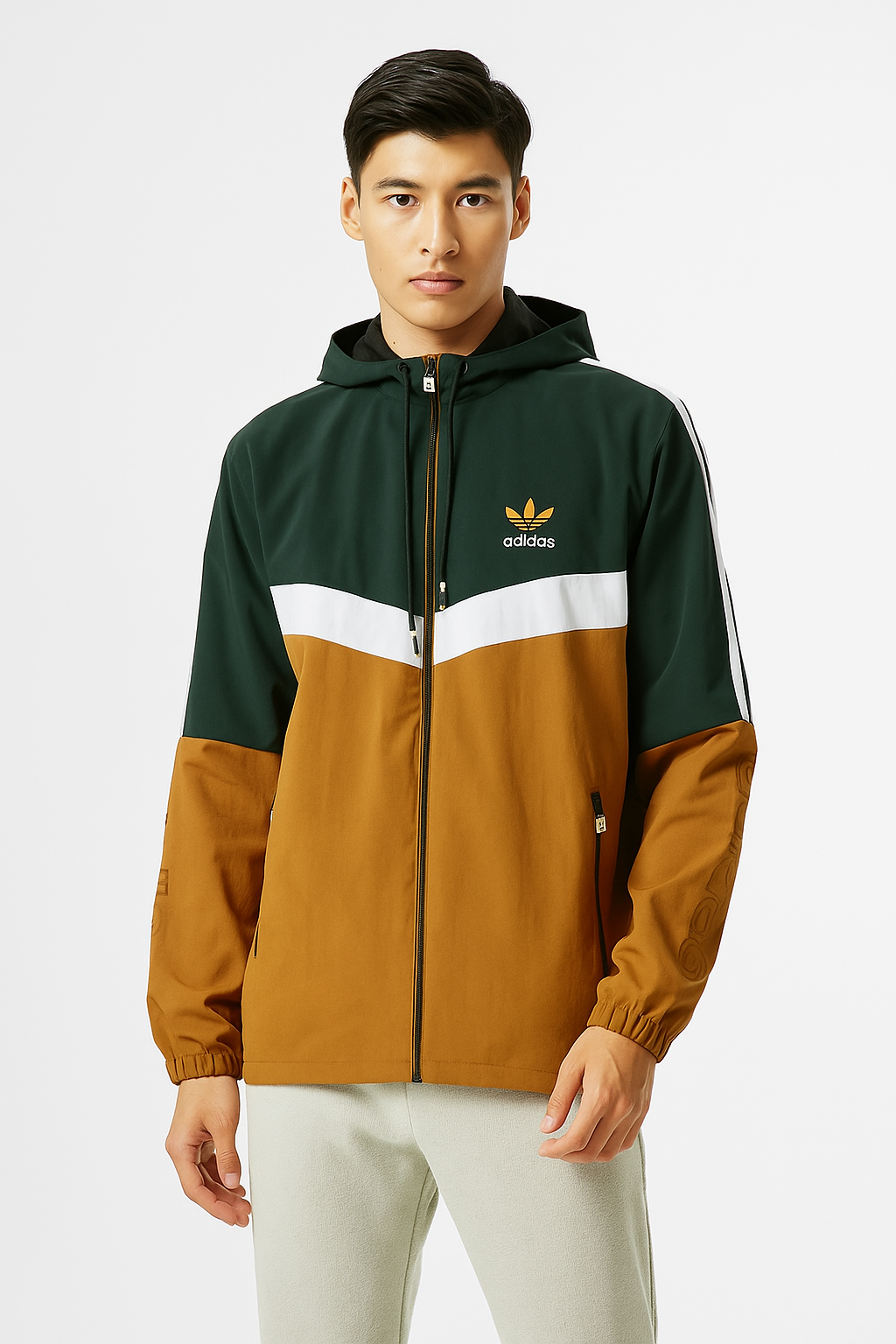 Adidas Luxe Heritage Windbreaker – Water-Repellent Black, White & Beige Edition