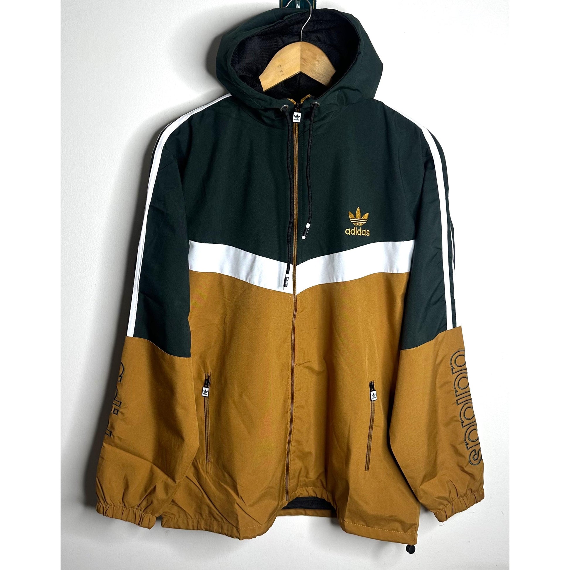 Upgrade your sportswear collection with the ADIDAS ORIGINALS BLACK WHITE AND BROWN WINDBREAKER JACKET. Designed for comfort, performance, and style, this full-zip tracksuit top is perfect for workouts, outdoor activities, and casual wear. The lightweight windbreaker material ensures protection from wind and light drizzle, while the iconic Adidas Trefoil logo and 3-stripe design add a classic athletic touch. Featuring a hooded design, elasticated cuffs, and side pockets, this jacket combines functionality with streetwear-inspired style.