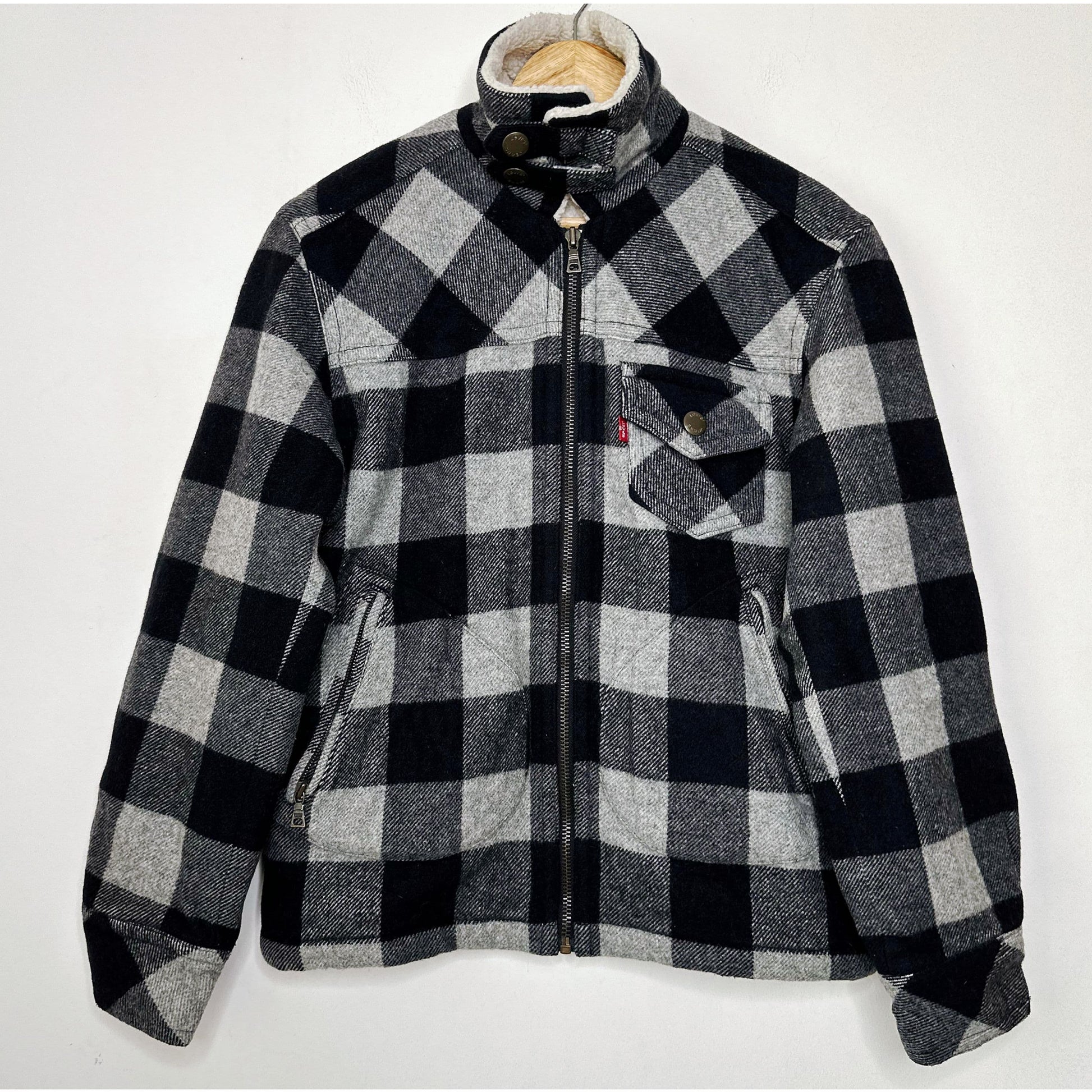 LEVI'S BLACK WHITE CHECKED PREMIUM JACKETS SIZE - M