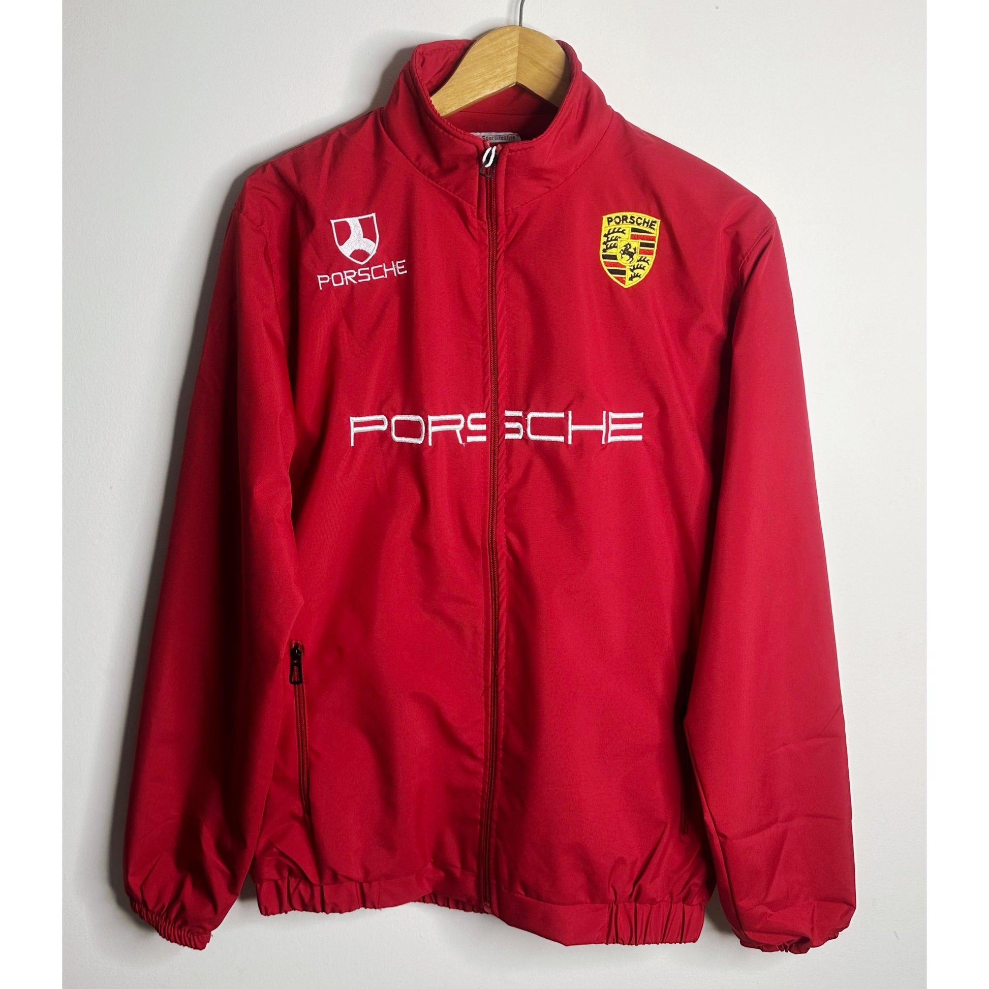 Upgrade your wardrobe with this Porsche RED Sports Jacket for Men, designed for performance, comfort, and iconic racing style. Made from premium-quality material, this full-zip black jacket features bold yellow Porsche embroideryon the front, including the Porsche logo and shield, giving it an authentic motorsport appeal.